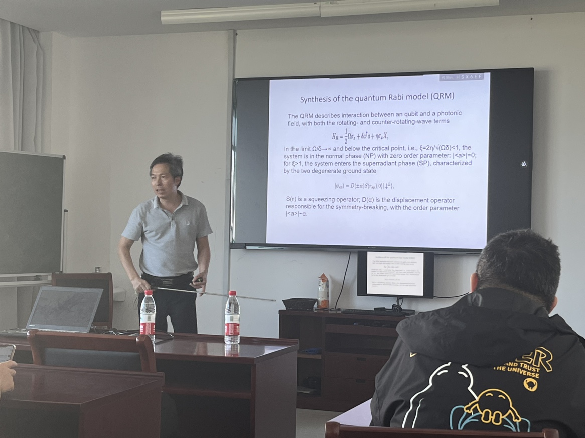 郑仕标教授本次报告的主要内容围绕在电路QED系统中进行的一些量子相变实验和模拟。首先介绍量子拉比模型(QRM),该模型由超导量子比特和微波谐振器合成。随后,郑老师展示用该QRM实现的一阶超辐射相变,其特征是光子超级猫态的出现,由真空态和两个相相反的相干态组成。接下来,郑老师详细介绍了用拉比模型对狄拉克粒子的量子模拟和非厄米哈密顿的研究。最后,郑老师在电路QED架构中展示了一种特殊纠缠现象的实验演示。报告会上,大家积极踊跃与郑老师交流,郑教授也对博彩网址大全师生给予高度的评价和认可。本次学术交流更加激励了广大师生的科研兴趣和动力,活跃了学术气氛,对博彩网址大全师生的学习和工作具有很大的帮助。