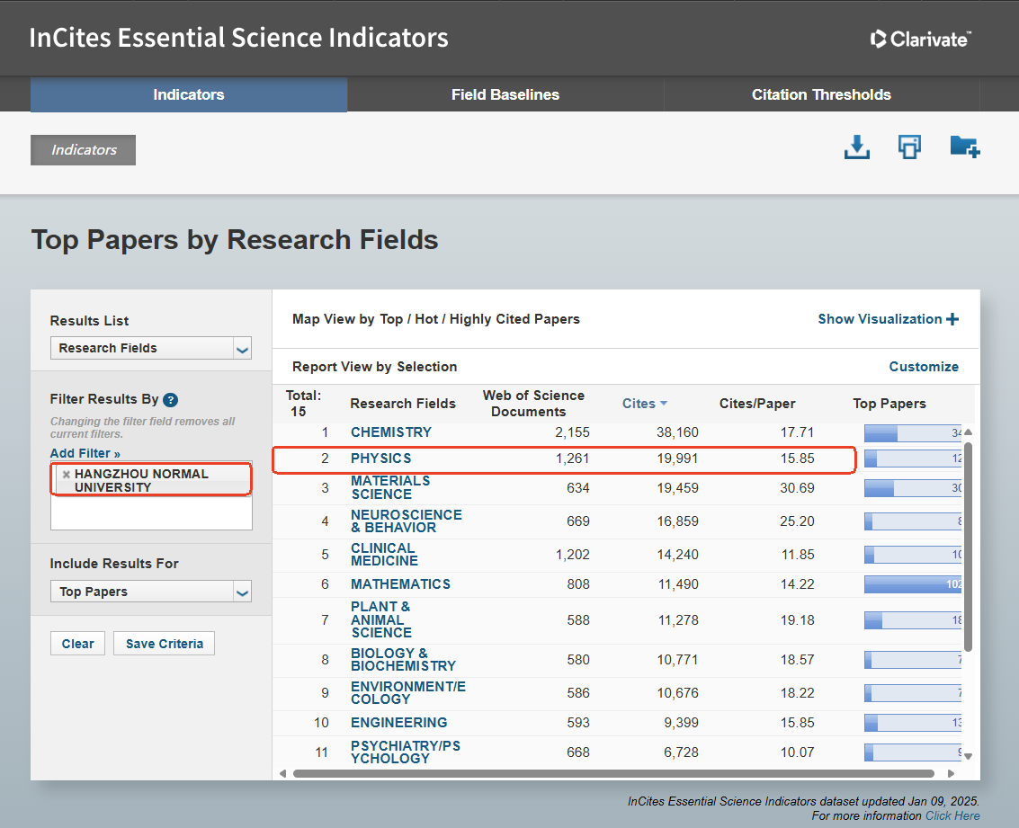 1月9日,基本科学指标数据库(Essential Science Indicators,简称ESI)公布最新数据,博彩网址大全“物理学”(Physics)学科进入ESI全球排名前1%,标志着博彩网址大全物理学学科的科研实力与影响力迈上了新台阶、学科建设水平取得了新的突破。