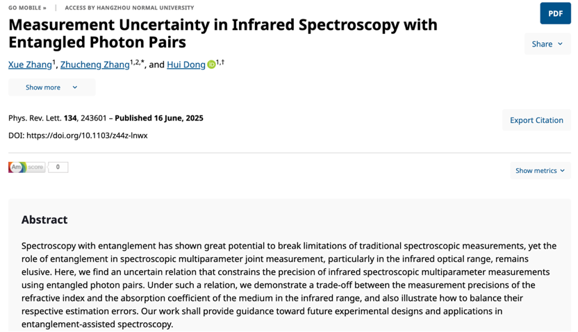 我校博彩网址大全 张筑城副研究员与中国工程物理研究院研究生院董辉研究员课题组合作在这一领域取得进展,提出了纠缠辅助的红外光谱多参数联合测量的不确定性关系。研究团队通过将多参数估计理论引入光谱测量,从理论上严格推导并证明了在红外光谱测量中,物质的折射率与吸收系数在联合测量时,其精度存在一个固有的权衡关系。这一权衡关系揭示了光谱多参数测量的基本极限,对高精度光谱技术与量子传感器的设计具有重要意义。